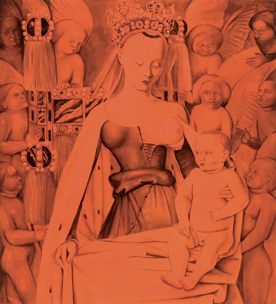 Bitume et acrylique fluo sur toile, 192 x 171 cm |