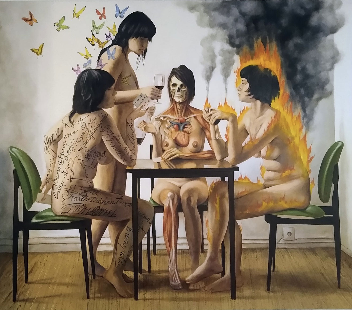Huile sur toile et acrylique sur résine à cristal, dimension variable (tableau 140 x 100 cm)