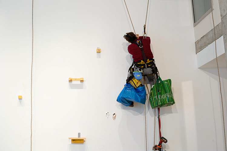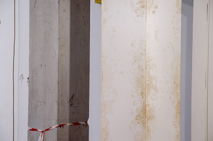 Le seul indice de présence de cette oeuvre camouflée en trompe l’œil sont les traces de rouille qu’ont laissé nos mains durant la fabrication et le montage de la colonne. |