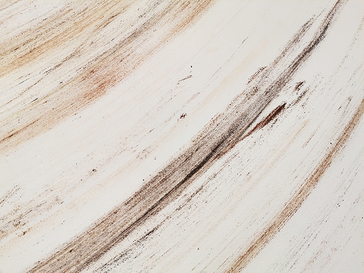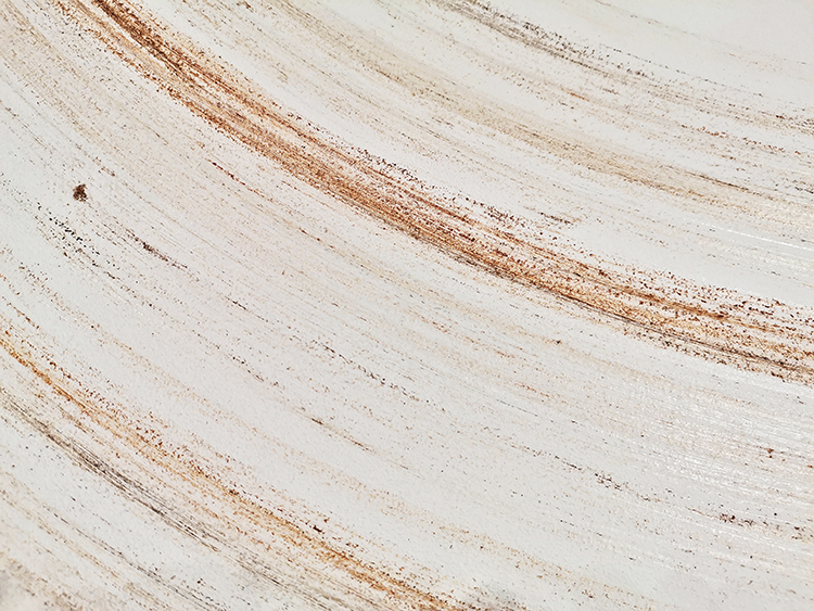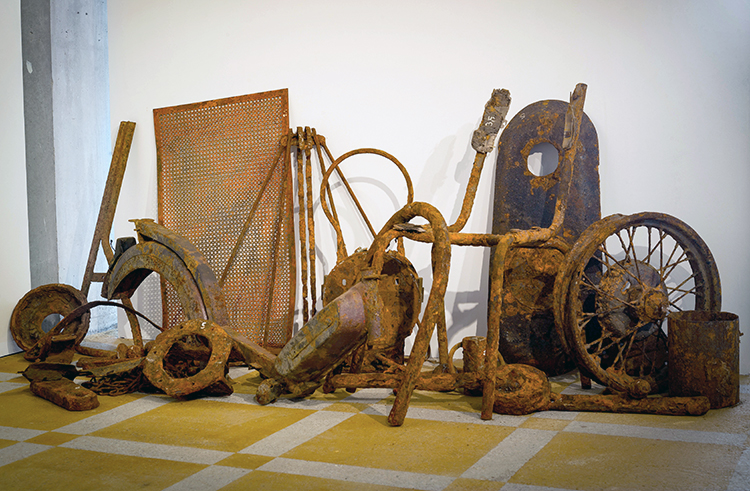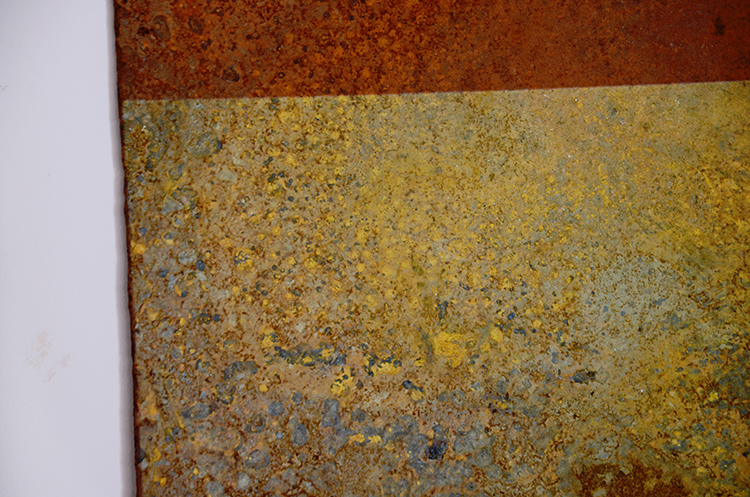 Poudre de rouille (issue des objets pêchés) sur béton (sol d’origine)