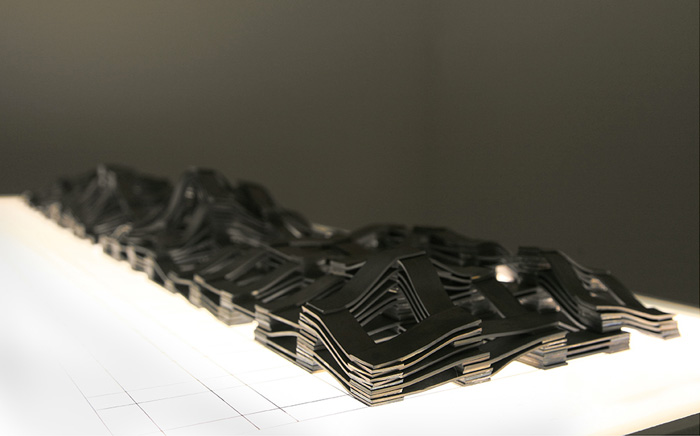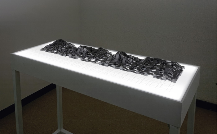 Lamelles de plomb, table lumineuse, 50 x 130 x 110 cm