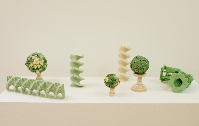 Vue de l'exposition Chlorophénylalaninoplastomecanostressrhéologoductilviridis-cacosmographigum (de la famille de l'arbalétrier poracé), Galerie Isabelle Gounod, 2011