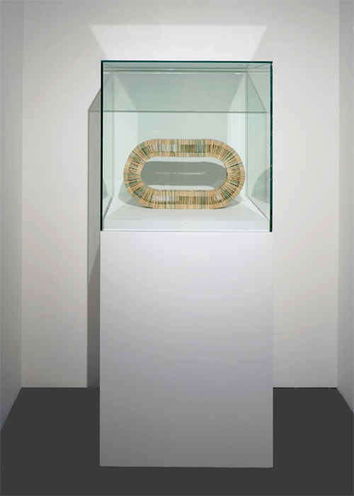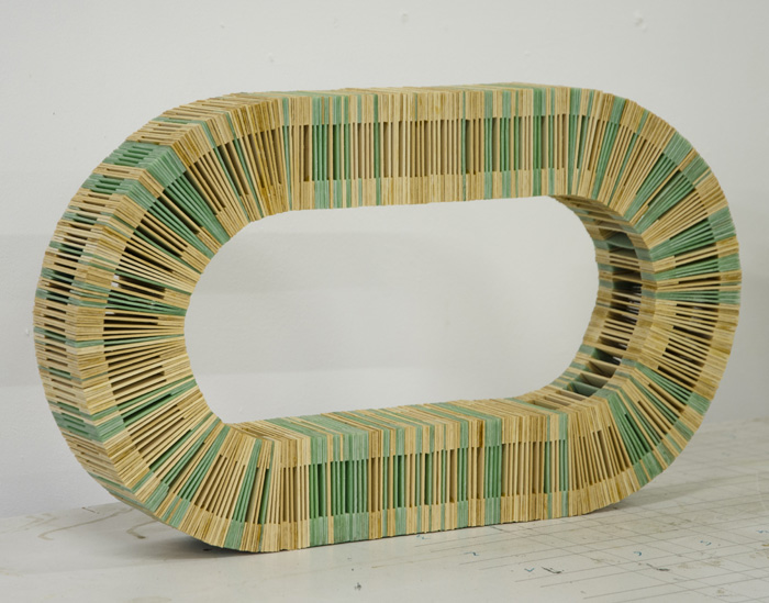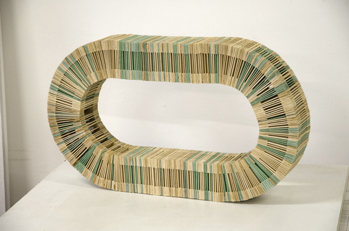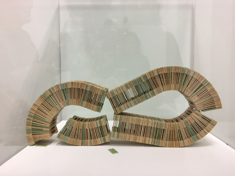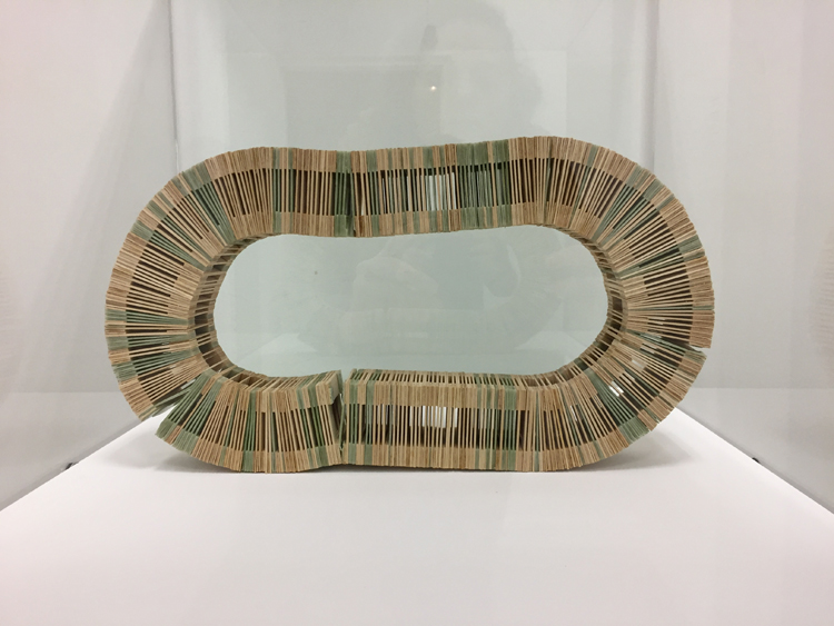 Lutte absurde de l’artiste avec l’oeuvre (ou inversement) : l’objet final contient plus de tablettes de bois que de chewing-gums.