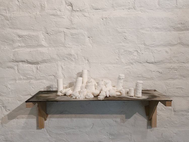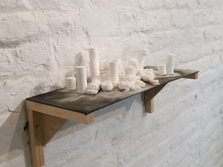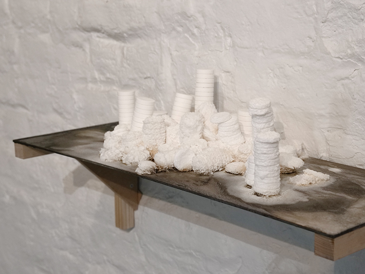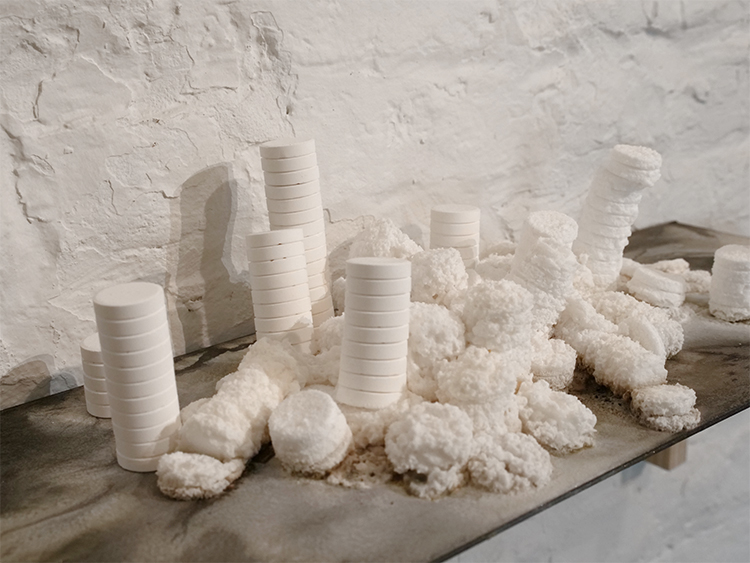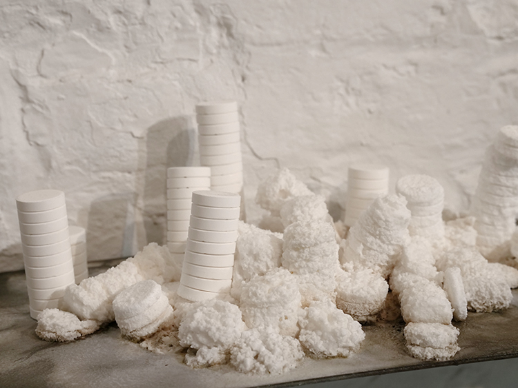 Reconstruction du lendemain 2022 Cachets effervescents, métal Vues de l’exposition Art Anderlecht, Glasgow studio (Bruxelles) sur une invitation de Thomas Couderc