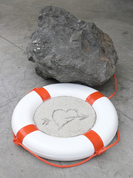Bouée de sauvage, fer à béton, béton 90 x 15 cm
