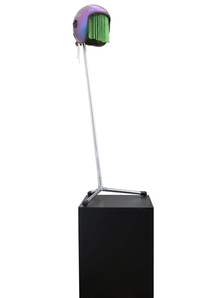 Casque, peinture en aluminium et dioxyde de titane, perles, vernis