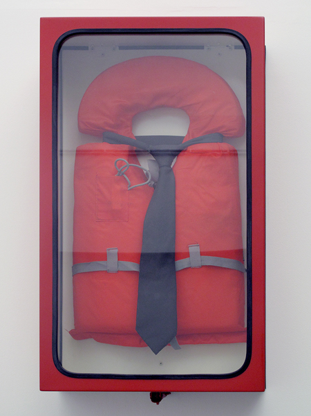 Métal, verre, caoutchouc, cravate, brassière, acrylique, 71 x 41 x 15,5 cm