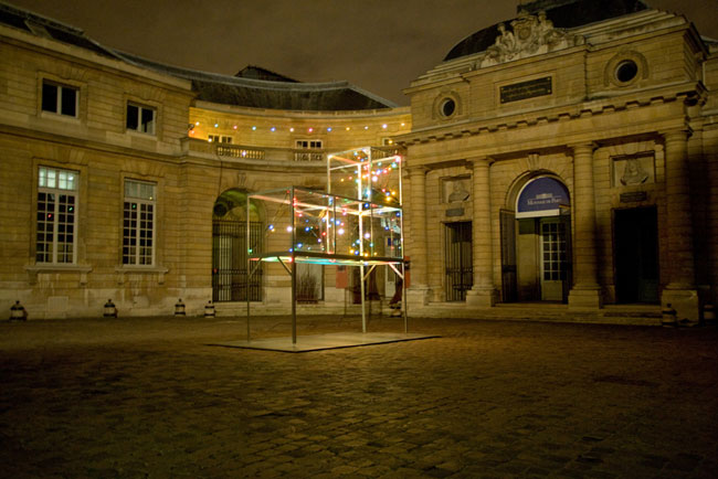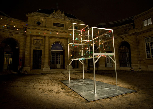 Métal peint, polycarbonate, guirlande électrique (100m), 300 x 600 x 500 cm (avec socle)