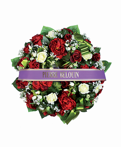 Trois couronnes mortuaires, ø 80 cm, bandeaux satin