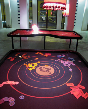 Table de jeu, impression numérique, u.v sur feutre, jetons et plaques,