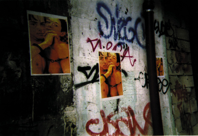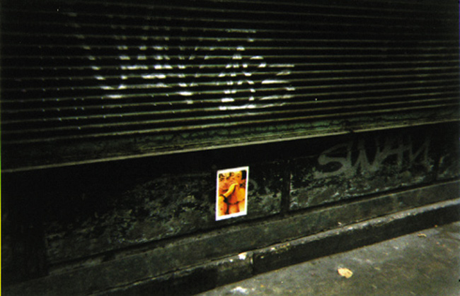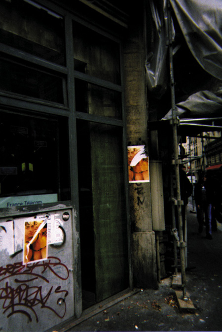 Colors print posters from an original photomaton 10x15, in situ installation on street Oberkampf, variable dimensions / Glassbox, "Ne me