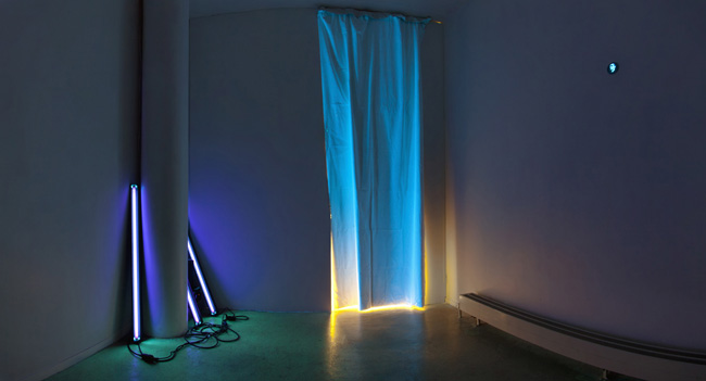 12 morceaux / chambre d'écho / delay / diffusion aléatoire dans une pièce vide éclairée à la lumière noire |