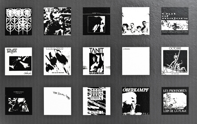 Papier peint composé d pochettes de disque ou K7 de groupes français ou francophones des années 80 |