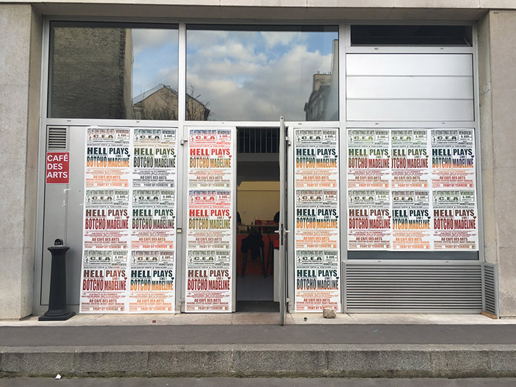 Un concert du groupe toulonnais Hell Botcho interprété par Alexandre Telliez-Moreni, le tout sur fond iconographique de Weg Zum Nachbarn3. Un film tant érotique qu’expérimental de Lutz Mommartz, cinéaste allemand des années 1968. Ce concert s’accompagne d’une série d’affiches sérigraphiées sur papier polychromatique, réalisée par l’atelier Tchikebe, afin d’annoncer collégialement et joyeusement cet unique live aux accents Riviera versus French Californie.