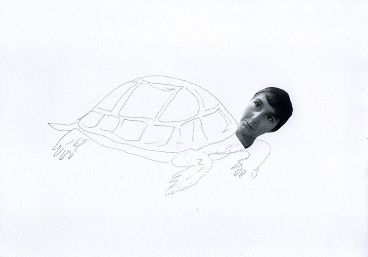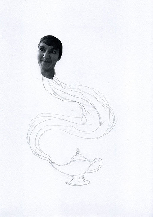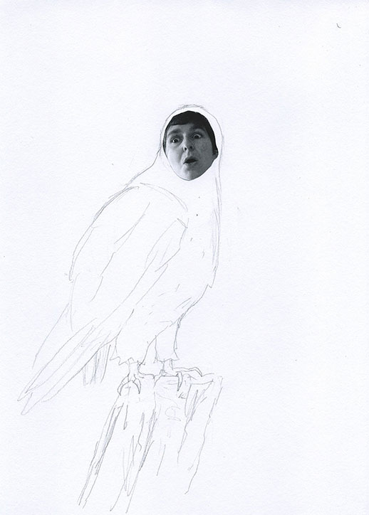 Impossibles 2019 Série de 8 dessins au crayon à papier et collage sur papier canson, 21 x 30 cm Un clin d'oeil a Eric Duyckaerts récemment disparu. Performances en génie, en sage, ..., états de transition, rencontre des possibles et des impossibles.