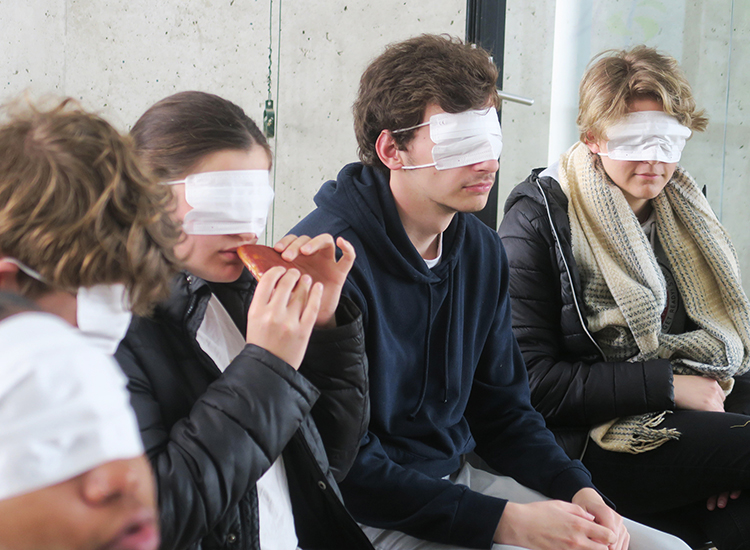 Fin de l’obligation de port du masque, déplacement du masque sur les yeux pour dégager le nez et la bouche. Donner libre champ aux sens oubliés pendant la pandémie.
