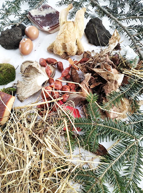 Les éléments olfactifs ont peu à peu composé une nature morte que les participants ont découvert en fin de performance |