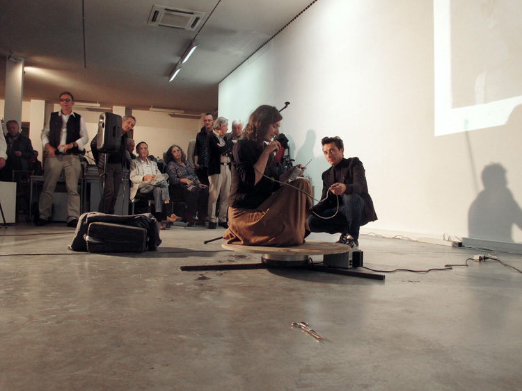 Voix et radio performée pour l'anniversaire de Jean Dupuy sur la "revolving stage", Dojo, Nice, France, 2015