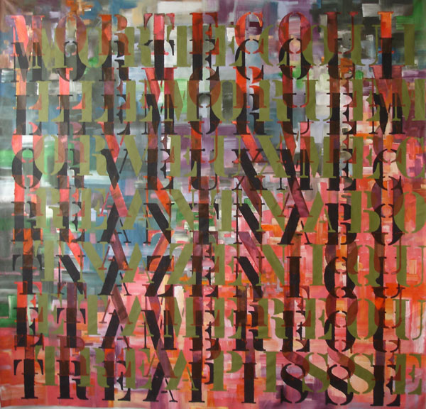 Peinture acrylique sur toile et crayons, 200 x 200 cm