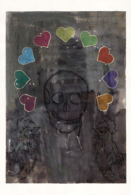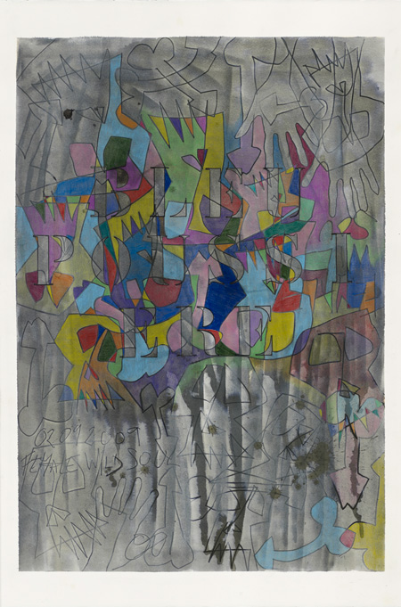 Encre et crayons 80 x 120 cm