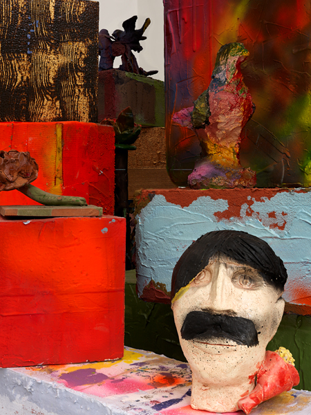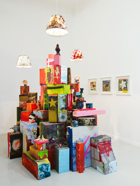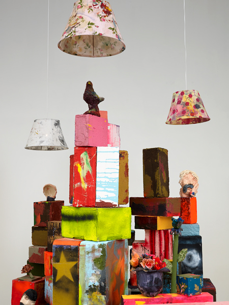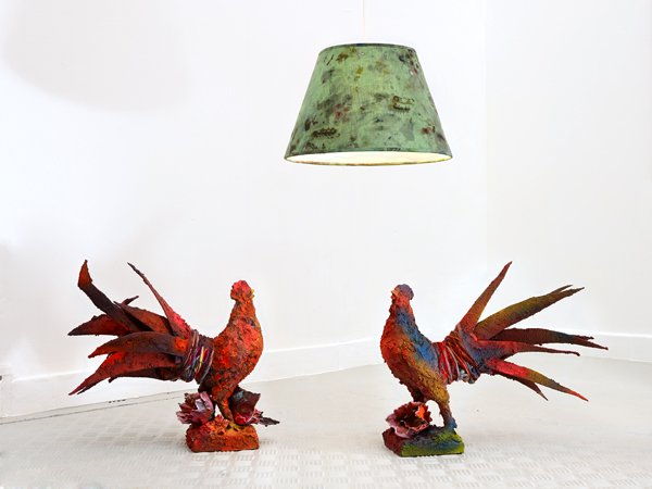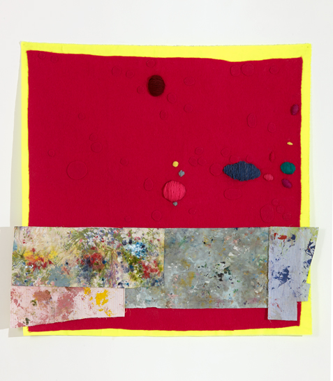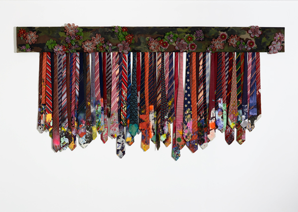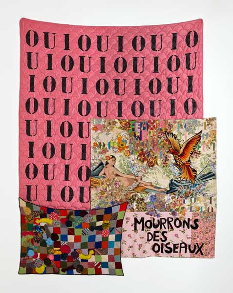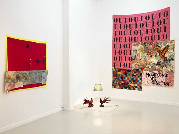 Tissus, perles, fil de fer et peinture 125 x 250 cm