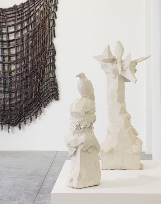 ?extrêmement variées. L’”arrangement” choisi pour l’exposition dans la réserve de formes qu’elle s’est constituée viendra dialoguer en contrepoint de ses “lainages” comme témoignage au sol, dans le champ étendu de l’espace, de son désir de sculpture.