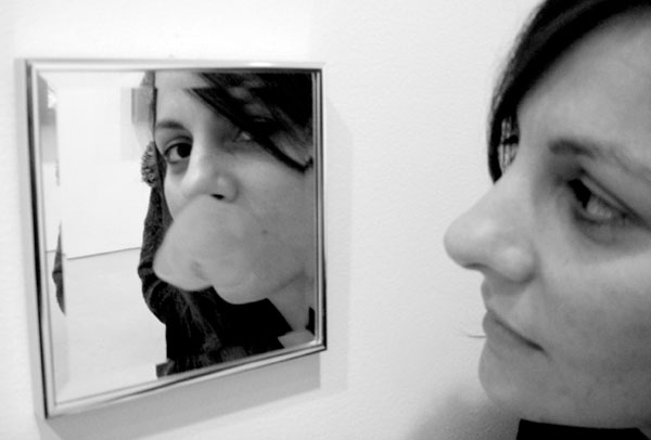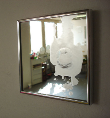 Soupirs à l'acide sur miroir, 15 x 15 cm