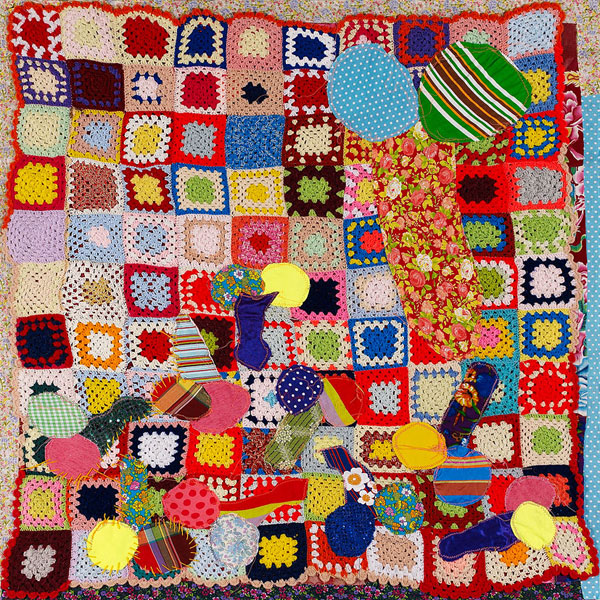Tapis, tissus cousus et acrylique, 275 x 283 cm