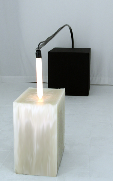 Parafine, lame d’acier, ampoule électrique linestra, câble, bois