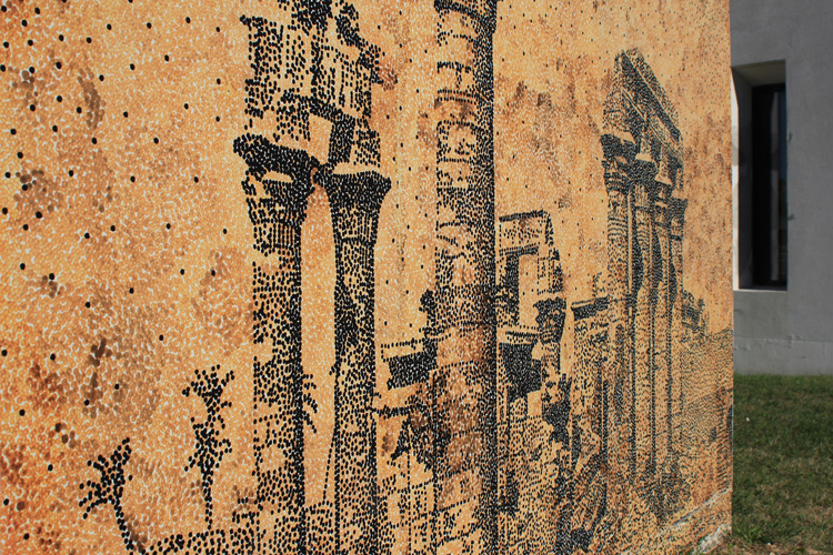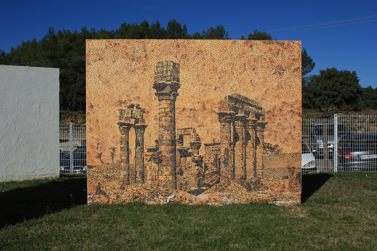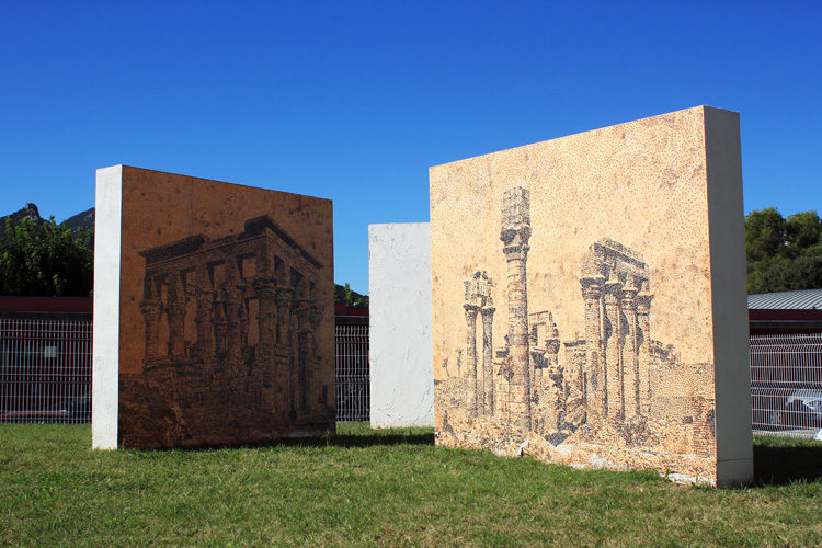 Dessins installés sur la pelouse de l'hôtel de communauté de communes de Saint Mathieu de Tréviers, de juin à novembre 2018, dans le cadre de la manifestation Au bord des paysages, commissariat : Gwendoline Corthier