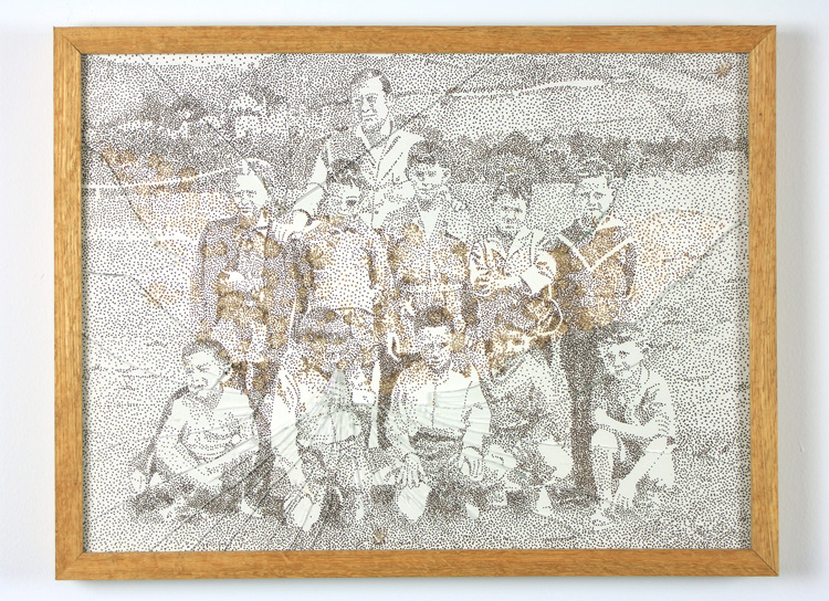 Dessin réalisé à partir d’une photographie du fonds d’archives communal de Port de Bouc, feutre sur papier encadré brisé sous verre anti u.v, 30 x 40 cm |