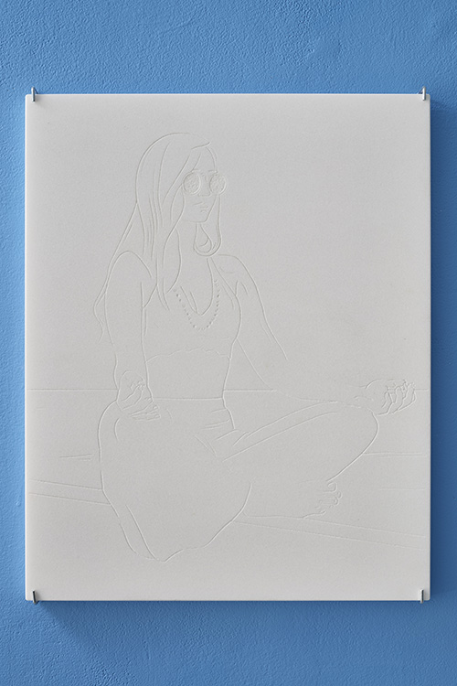 Gravure sur marbre blanc, à partir de l’instagram de Gabby Petito, 40 X 50 cm |