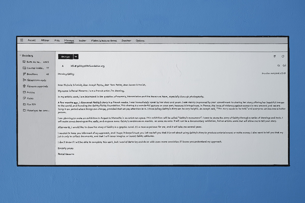 Ce fait divers est au départ d'un projet aux diverses ramifications, et notamment un roman graphique en ligne de mire. En septembre 2024 s'est tenue une première étape du projet, l'exposition Monument pour Gabby, à la galerie Territoires partagés à Marseille, dans le cadre de la rentrée de l'art contemporain et de la Saison du dessin.