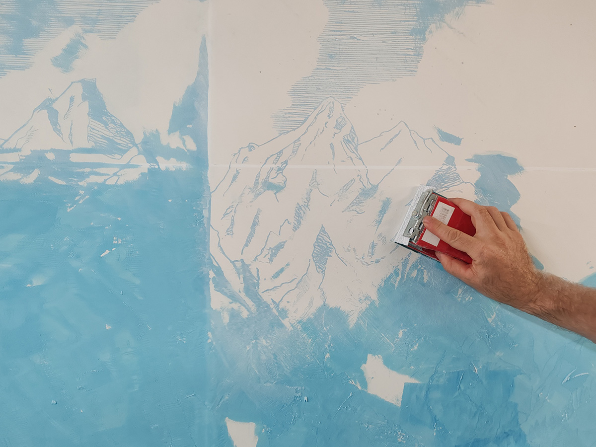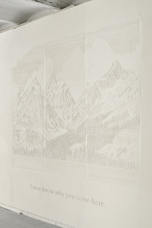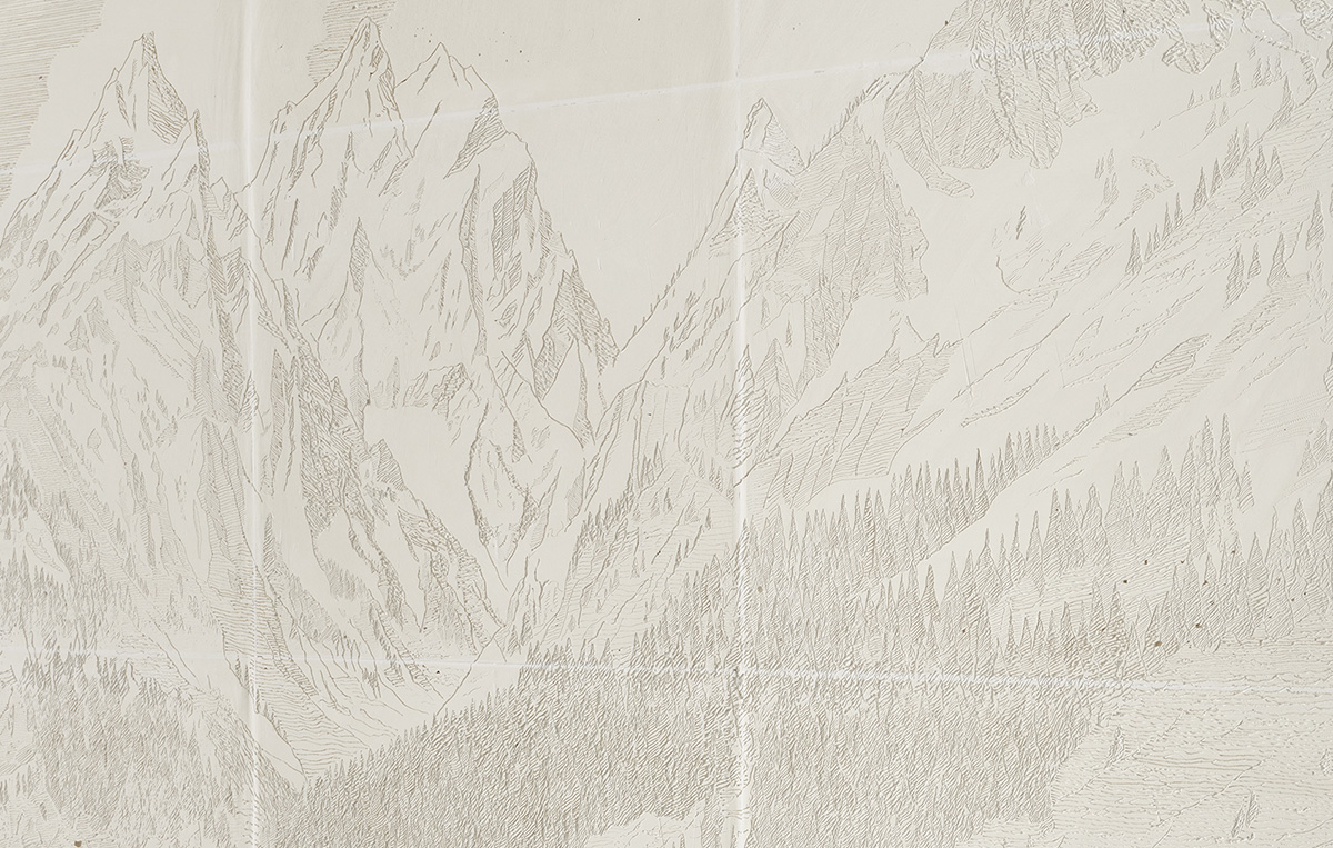 Gravure sur plâtre, à partir de l’instagram de Joseph Petito, 220 X 379 cm |