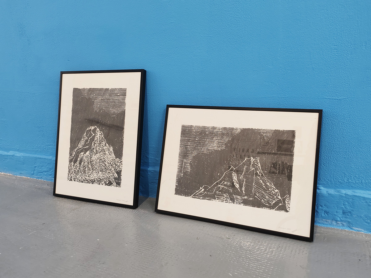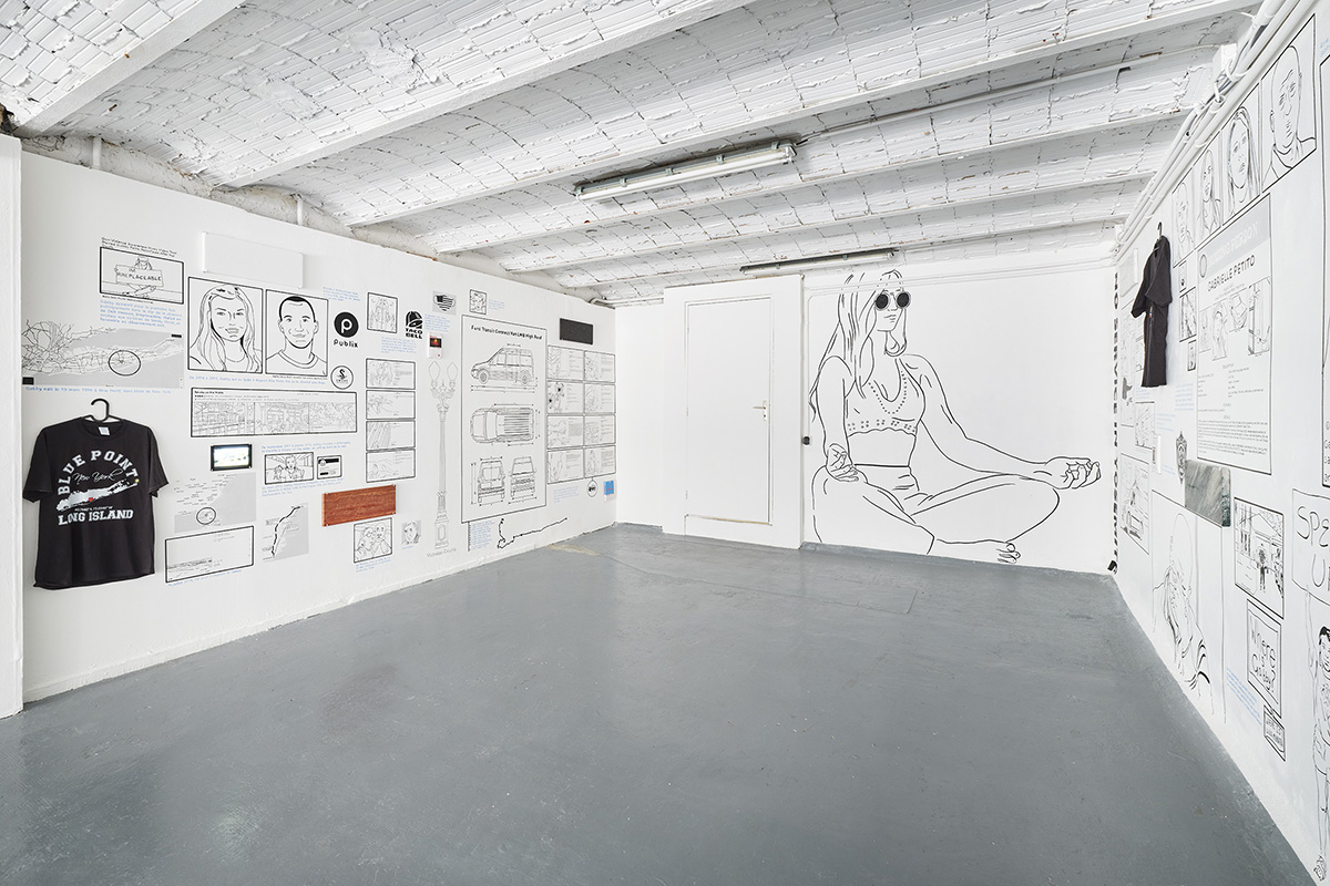 Peinture, marbres gravés, livres, T-shirt. 220 x 394 cm |