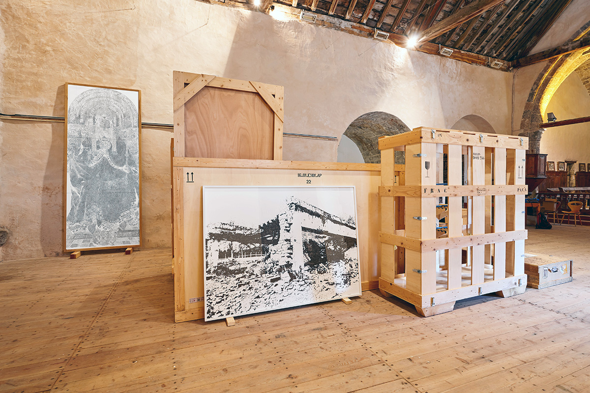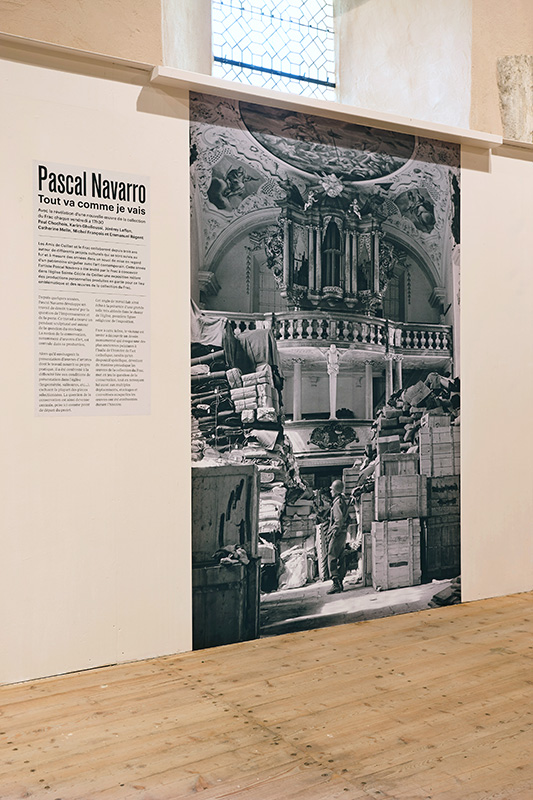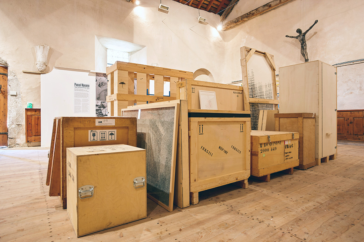 Il s'est vite avéré qu'il était difficile de présenter des pièces dans l'église de Ceillac pour des questions de conservations. C'est le point de départ du projet, que j'ai conçu sous forme protocolaire: l'exposition présentait des pièces dans leurs caisses, opérant un déplacement des réserves, rappelant l'usage des églises par les nazis pendant la seconde guerre mondiale. Une pièce était déballée et présentée au public une fois par semaine. Ce dispositif permettait à la fois de susciter un type d'attention très spécifique, tout en garantissant la sécurité des oeuvres.