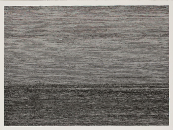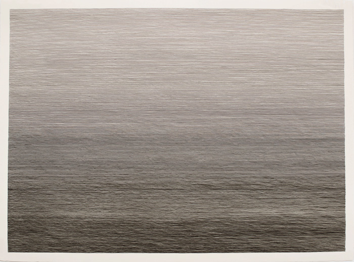 Ce travail propose un équilibre entre une lecture procédurale (un geste répété sur une durée très longue) et une lecture iconique (une surface d’eau, un paysage). Le titre général Eden Lake évoque un site idyllique mais il est en réalité emprunté à un film d’épouvante. Chaque dessin possède un titre spécifique, qui ajoute au travail une dimension mémorielle. Chaque titre est une adresse faite à ma mère disparue. |
