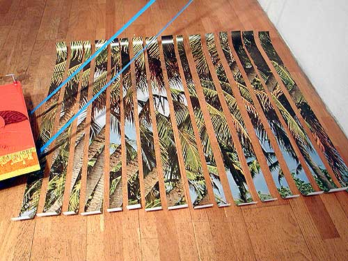 Poster et papiers découpés, scotch, dessins, tables basses