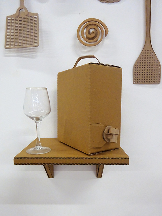 Carton ondulé, verre, environ 1 m x 1 m x 40 cm |