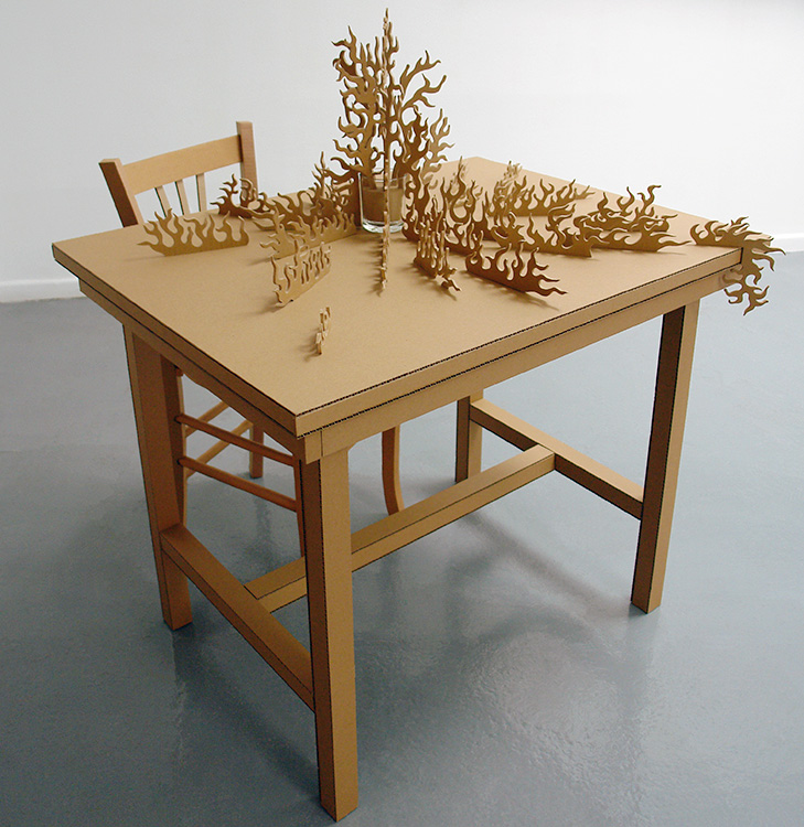 Carton ondulé, verre, 100 x 120 x 100 cm