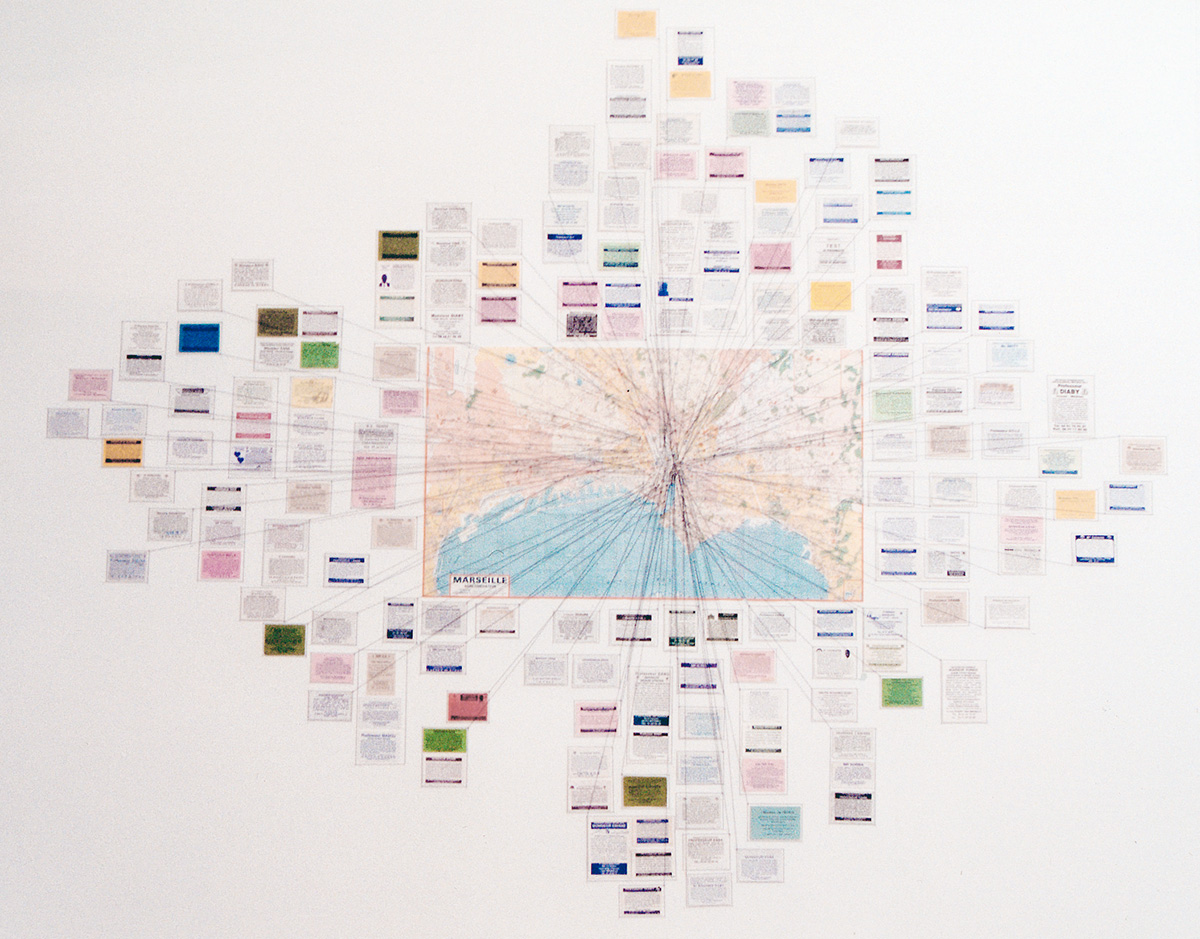 Plan-guide Blay, cartes de marabout, épingles, fils