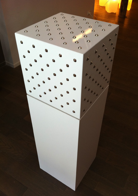 Bois, peinture, vernis, acier chromé, 80 x 80 x 80 cm